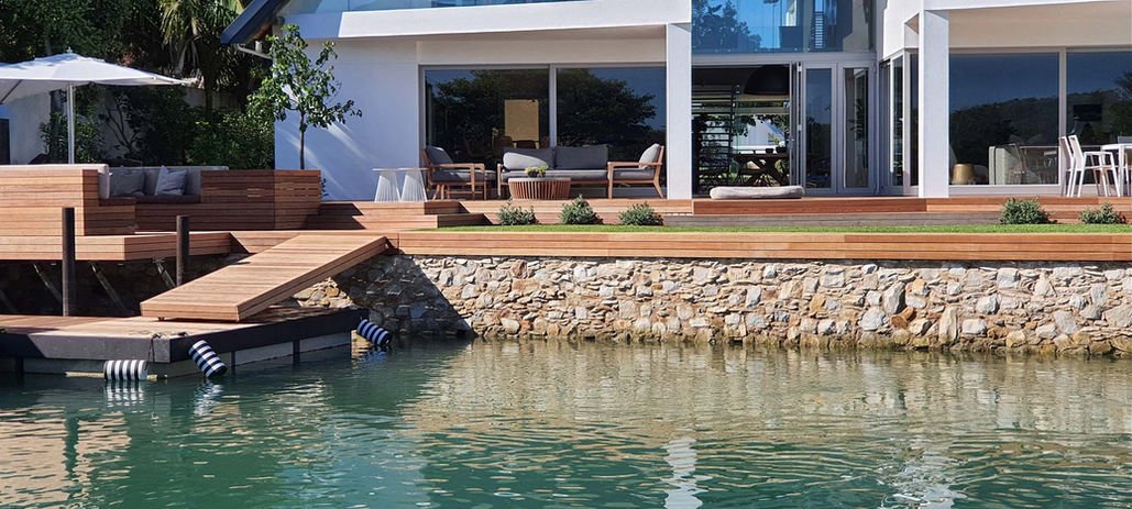 As the market leaders in retaining walls; we work with gabions, concrete and stone cladding. Our articulated stairs, jetties and decking are custom built and carried out to the highest specification. You can see examples of our fine workmanship throughout the canals in St Francis Bay.